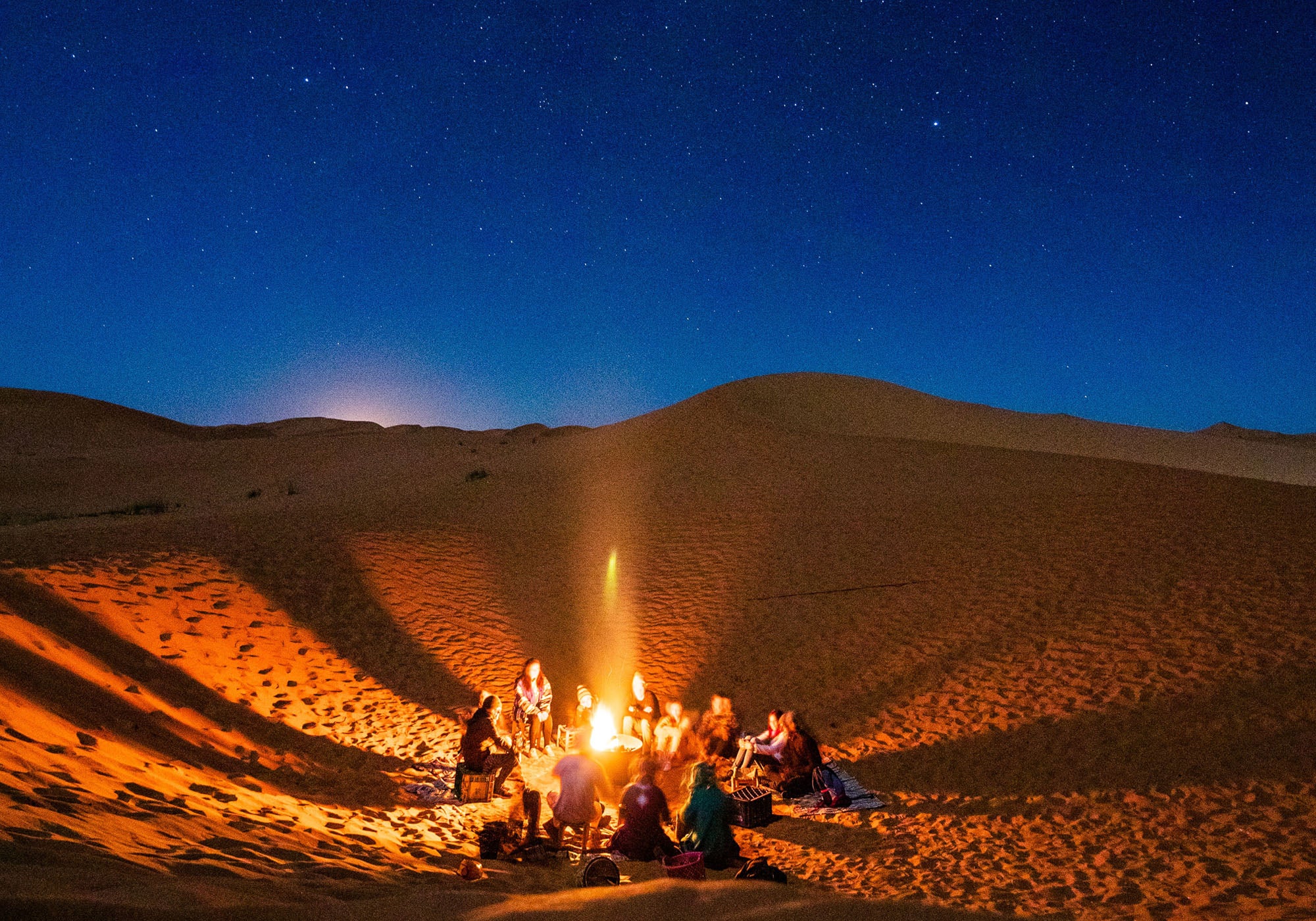 There is a specific moment in Merzouga when the rolling dunes shed their heat and the Sahara sky reveals its true magnificence.