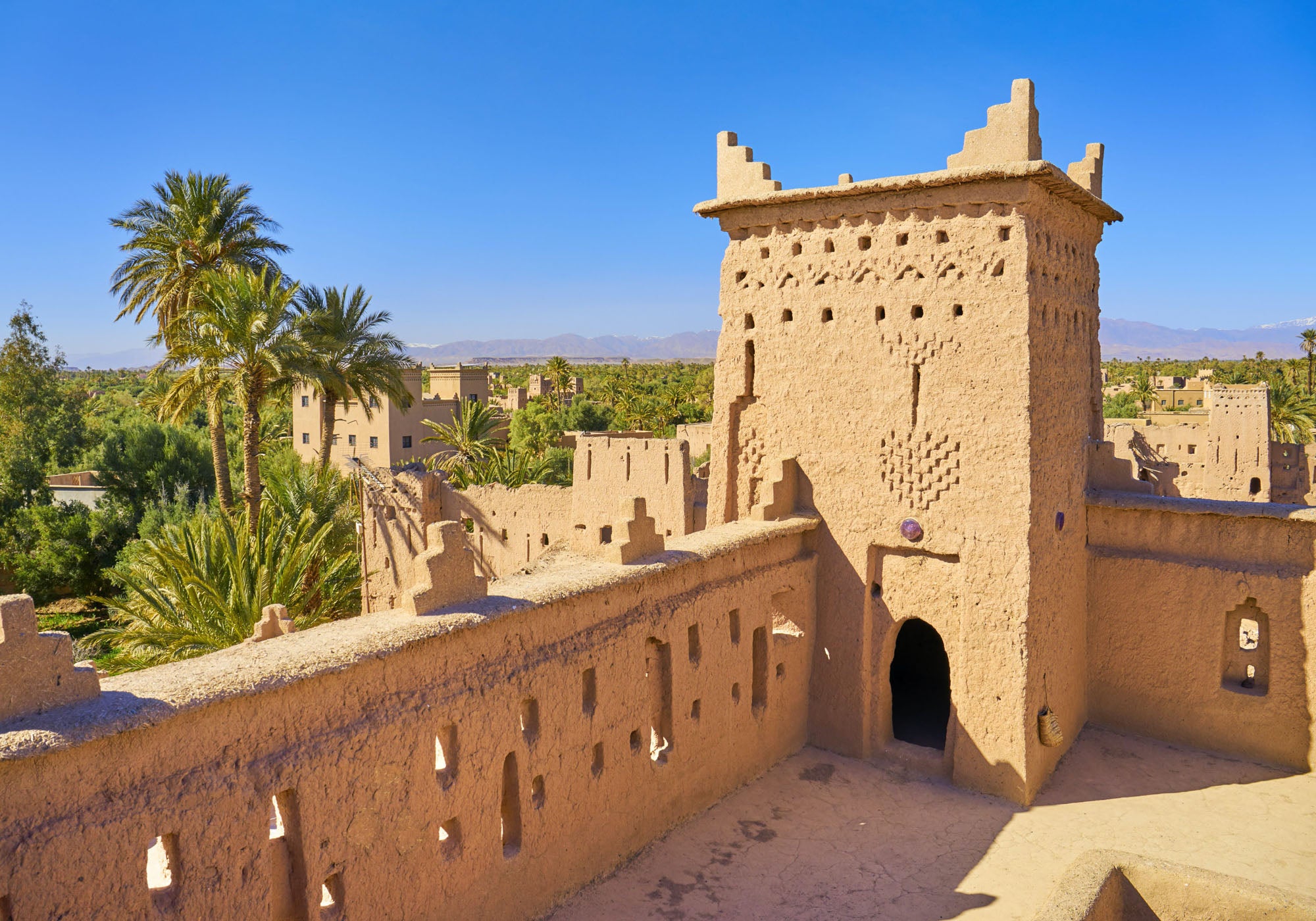 Visit the Tifoultoute Kasbah for a panoramic view of the Ouarzazate River valley and the snow-capped Atlas peaks in the distance