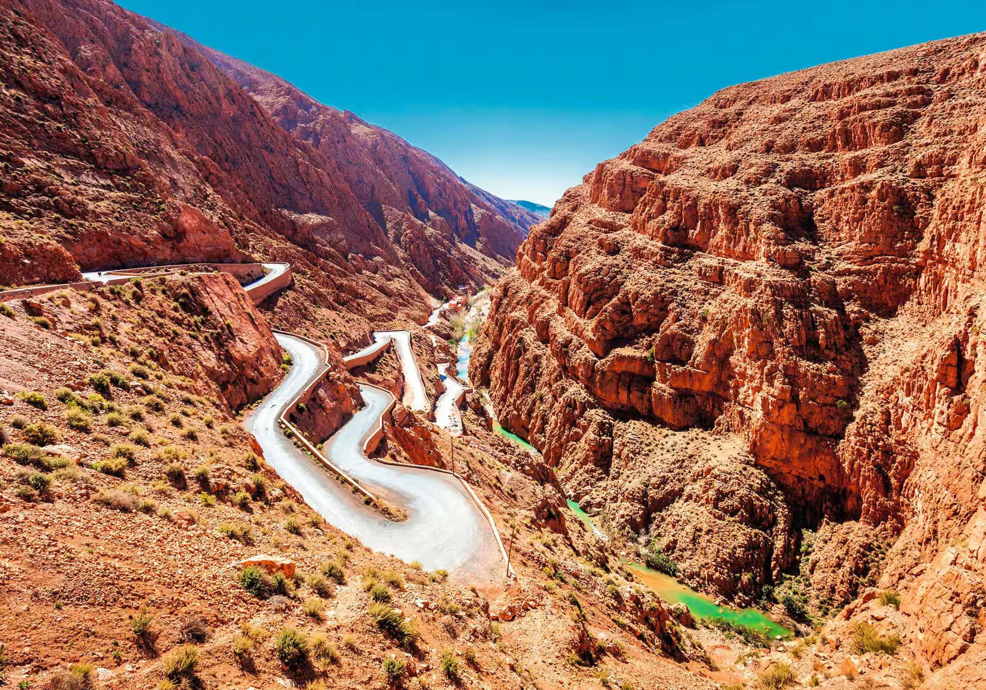 You’ll navigate the famous Dades serpentine road, a feat of engineering that offers a dizzying, bird's-eye view of the lush ribbon of greenery cutting through the red canyon.