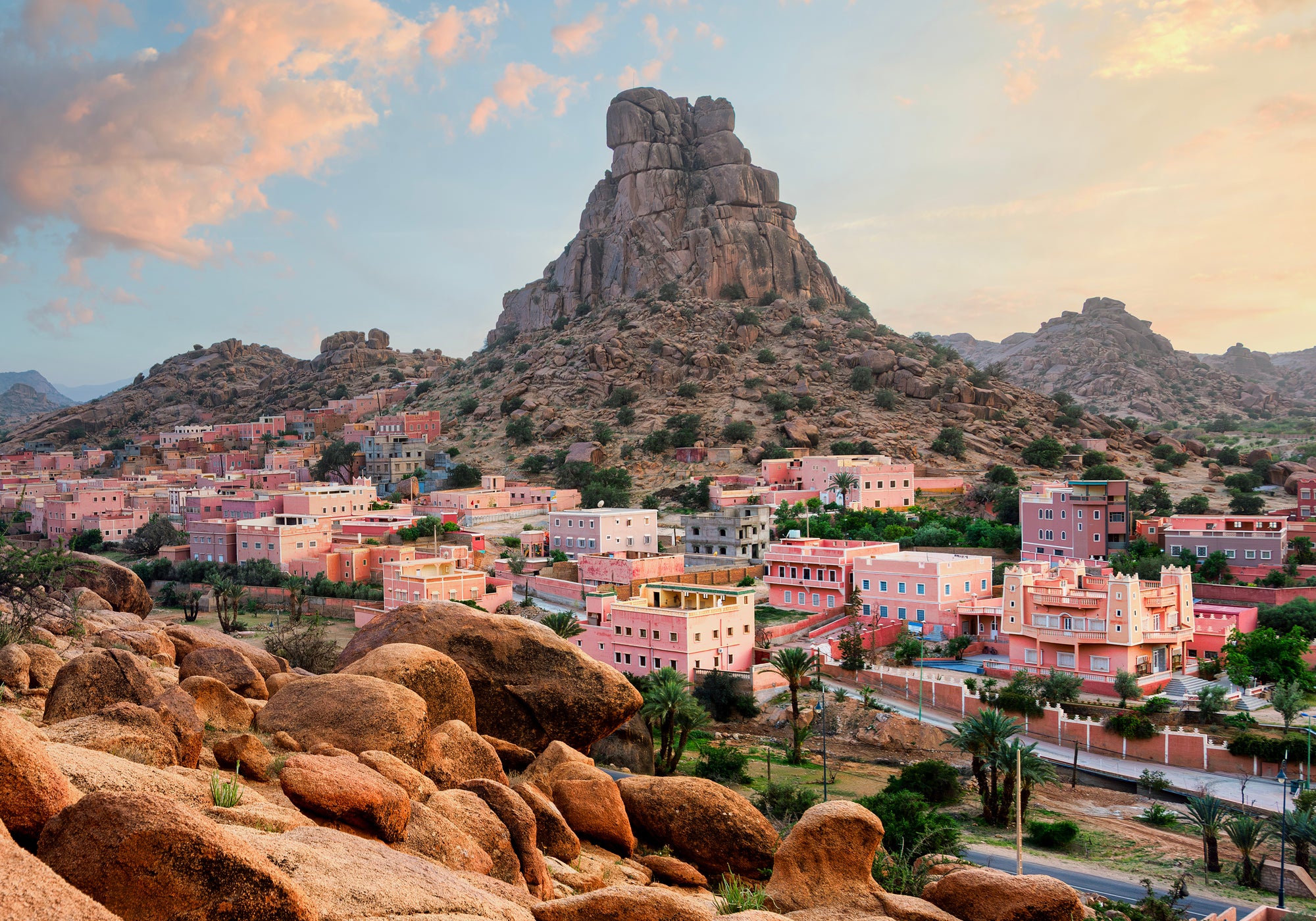 The Anti-Atlas offers a drier, volcanic landscape. In the Ameln Valley, you’ll witness the "Painted Rocks," a massive land-art installation where giant granite boulders have been painted in vibrant blues and pinks.